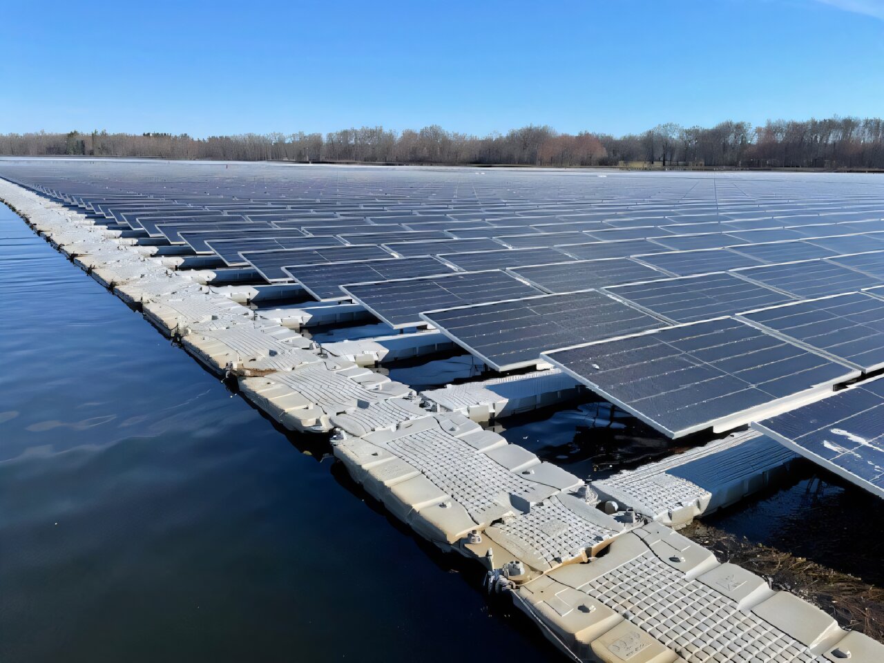Le projet solaire photovoltaïque flottant (FPV) de Canoe Brook, le plus grand aux États-Unis au moment de son achèvement avec